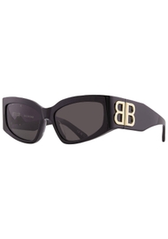 Balenciaga Sunglasses. Series number: BB0321S. Color code: 002. Shape: Cat Eye. Lens Width: 57 mm. Lens Bridge: 17 mm. Arm Length: 125 mm. 100% UV protection. Non-Polarized. Frame Material: Recycled Acetate. Frame Color: Black. Lenses Type: Gray. Rim Style: Full-Rim. UPC/EAN code: 889652471211. Balenciaga Gray Cat Eye Ladies Sunglasses BB0321S 002 57.Manufacturer's Packaging Included. Packaging Size And Color May Vary.