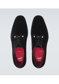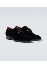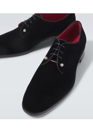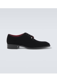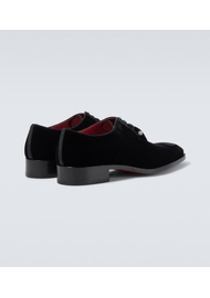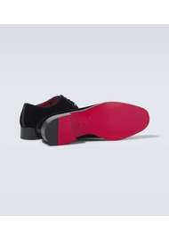 Upper: velvet. Lining: leather. Sole: leather insole, signature red leather sole. Toe shape: almond toe. Made in Italy. Includes: shoe box, dust bags, extra laces. Designer color name: Black/Lin Loubi. Closure: lace-up. Hardware color: silver.