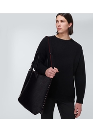 Detachable, adjustable shoulder strap, Top handles. Internal details: internal zipped pocket, leather lining. Designer color name: Black/Black/Black. Comes with dust bag. Made in Italy. Material: leather. Closure: open top. Leather.
