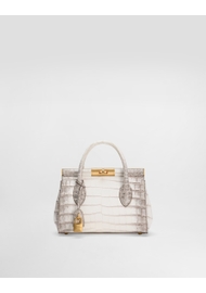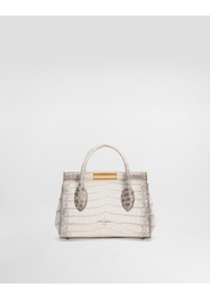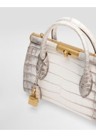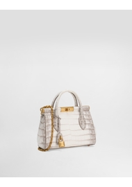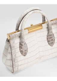 Himalayan crocodile skin Marlene top-handle bag: White Branded turn-lock Himalayan crocodile skin top handles Detachable chain strap Nappa leather lining with zipped pocket and flat pocket Metal feet studs on the base Item comes with a branded dust bag Measurements: H13.5 x L19 x D7 cm Made in Italy