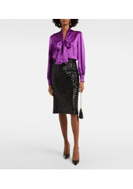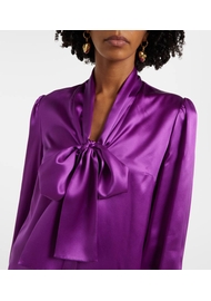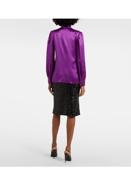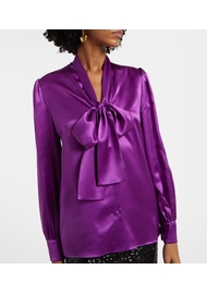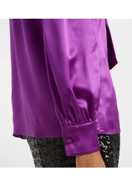 Material: 100% silk. Care instructions: dry clean. Made in Italy. Designer color name: Porpora. Closure: button fastening, self-ties. Buttoned cuffs. Silk.