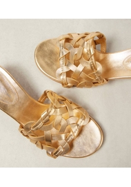 Upper: leather. Lining: leather. Sole: leather insole and sole. Toe shape: round open toe. Made in Italy. Includes: shoe box, dust bag. Designer color name: Mekong.