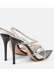 Upper: leather. Lining: leather. Sole: leather insole and sole. Toe shape: pointed open toe. Made in Italy. Includes: shoe box, dust bags. Designer color name: Silver+Black.