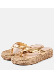 Upper: leather. Lining: leather. Sole: fabric insole, rubber sole. Toe shape: round open toe. Made in Italy. Includes: shoe box, dust bag. Designer color name: Mekong + Naturale. Trim: fabric.