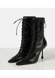 Upper: leather. Lining: leather. Sole: leather insole, leather and rubber sole. Toe shape: pointed toe. Made in Italy. Includes: shoe box, dust bags. Designer color name: Black. Closure: lace-up, zipped back.
