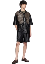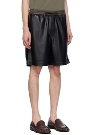 Grained OKOBOR™ vegan leather shorts. · Drawstring at elasticized waistband · Two-pocket styling · Mock-fly Supplier color: Shiitake/Black