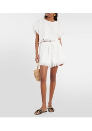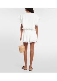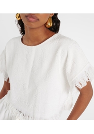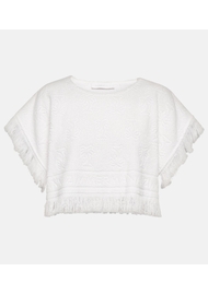 Material: 100% cotton. Care instructions: hand wash. Made in Portugal. Designer color name: Ivory. Sleeves: short-sleeved. Fringed edges. Collar: crewneck. Length: cropped. Cotton.