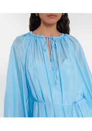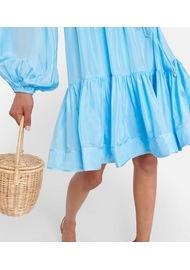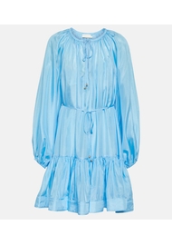 Lining: 88% polyester (recycled), 12% elastane, fully lined. Detachable belt, Belt loops. Made in China. Designer color name: Aqua. Material: 100% silk. Care instructions: dry clean. Self-tie neck. Elasticated sleeves. Silk.